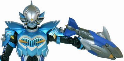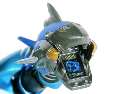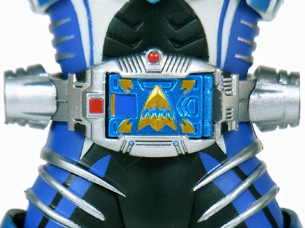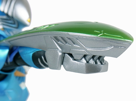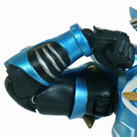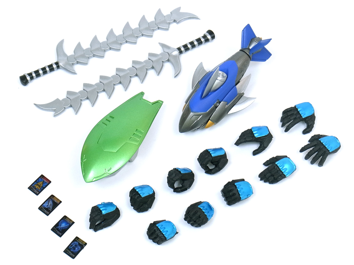 鮫を象った潜水艇のような召喚機。 手首のみ外し、そのジョイントを使って被せるように装着します。 | |