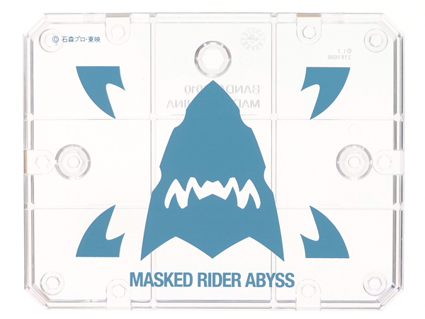 爽やかなアクアブルーでアビスの紋章が描かれた台座が同梱。 絵柄はまんま JAWS ですね。 | |