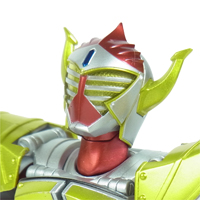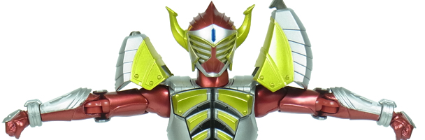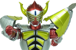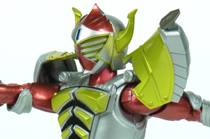 バナナというコミカルな素材を用いつつも、クールで迫力のあるデザインに まとめ上げた仮面ライダーバロン!! ダイナミックさはそのままに、S.H.Fのコンポーネンツを元に極めて堅実に フィギュア化された印象。 | |