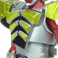 鎧武と同じく顔と首がアレイ型の球体関節、首と胸がボールジョイントで接続。 干渉物が少ないが、可動域は平凡。 | |