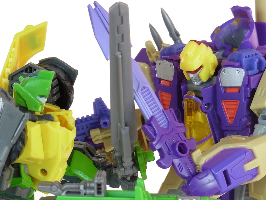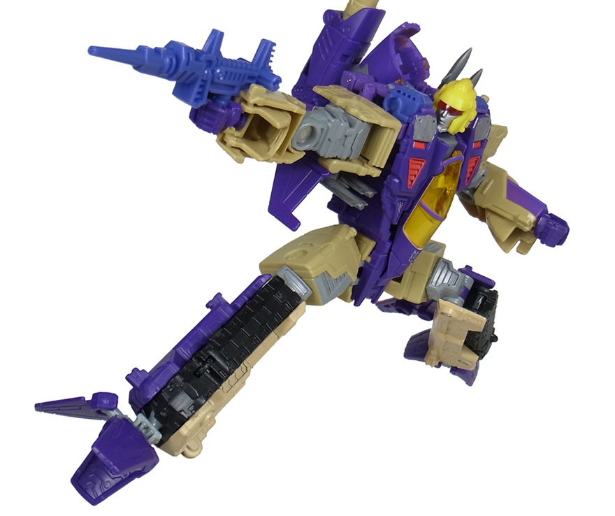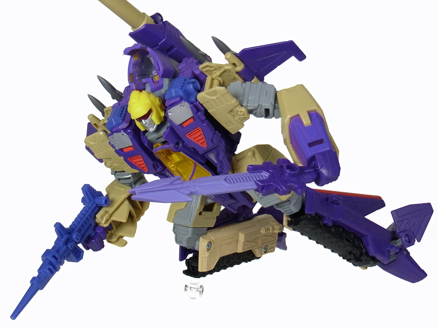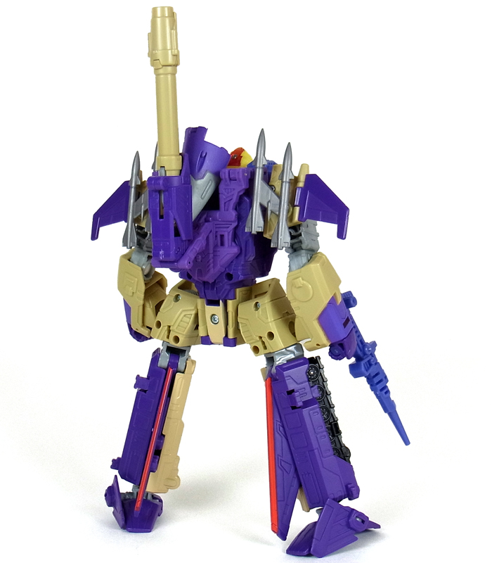 【コメント】 2013年、ジェネレーションズ枠からボイジャークラスとして鮮烈な復活を遂げたブリッツウイング! 基本コンセプトは充分評価できるものでしたが、いくつかの残念ポイントがあり、同アソートのスプリンガー とは洗練度というより完成度で一歩譲っていた印象でした。 しかし、この補完パーツを使うことにより、ようやく同レベルに追いついたように感じられます。 まず、一番の課題であった肩関節ですが、確実にジョイントして補強すると同時に、肩パネルが力強くボリュームアップされスタイリングも改善されています。 元々、肩アーマー内の軸がタイト過ぎたこともあり、あまりぞんざいに扱うと外れてしまうことはありますが、 強度も一般的な正規TFと比較して遜色のない程度には保たれていると思います。 この補強パーツはさすがにトランスフォーム時には着脱しなくてはなりませんが、パーツ自体に5oジョイントが設けられ、各ビークルモードでも余剰パーツにならないように配慮も為されています。 できれば色目をもう少し本体色に近づけてくれれば尚よかった。 また、ライフルが一回り大きくなって見栄えが良くなっているのも嬉しい所。 こちらも色がブルーの成形色ということで、黒かグレー系であればさらに有難かったです。 2連ミサイルのアイデアも面白かったですが、ライフル等と組み合わせなどの工夫があれば、もっと楽しく遊べたでしょう。 好みで評価が分かれそうなのが差し替え頭部ですが、3面フェイスチェンジが失われたのは惜しいですが、集光ギミックも加わり、イケメンとなりました。 何よりボールジョイントにより顎が引けるようになったため、ポージングもキマリます! これで全てにおいてでもスプリンガーと張りあうことができる?? ・・・しかし、何よりも思うのは、国内版発売時にこのような改修ができなかったかということ。 何があっても本体の塗装とパッケージや取説の印刷だけでは、少々アレな感じがします。 あと、国内版との整合性についてですが、私が購入していないため画像など載せられなくてすみません。 あくまで想像ではありますが、このままでもそんなに違和感はないと思われます。 黄ヘルはかえって本編イメージ通りですし、金ヘルの方こそコレジャナイ感を抱いていた方には渡りに船? まあ、相応のテクをお持ちの方ならば、ライフルも含め、キットと割り切って思い通りに塗ってしまうのもアリかもしれません。 以上、SXS-A03 DESIGN FOR GENERATIONS BLIZTWING ジェネレーションズ ブリッツウイング用補完パーツ のレビュー終了! |