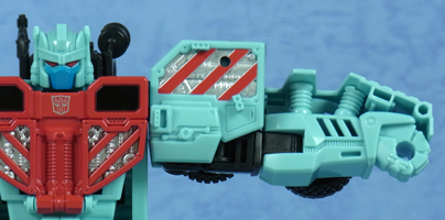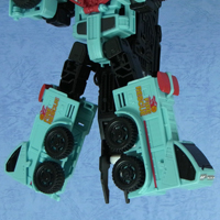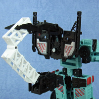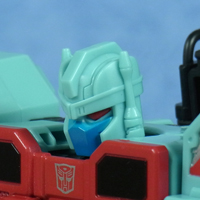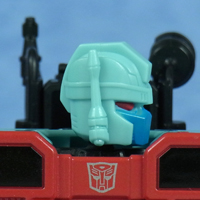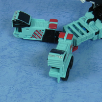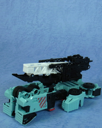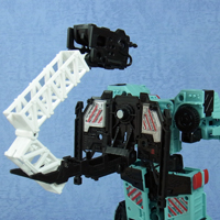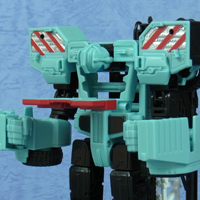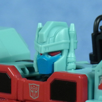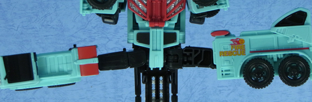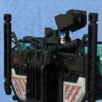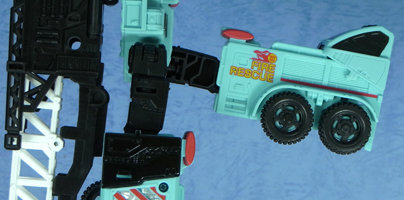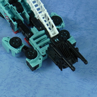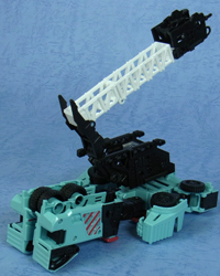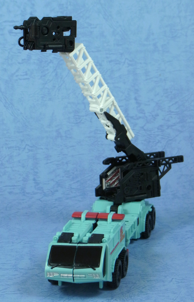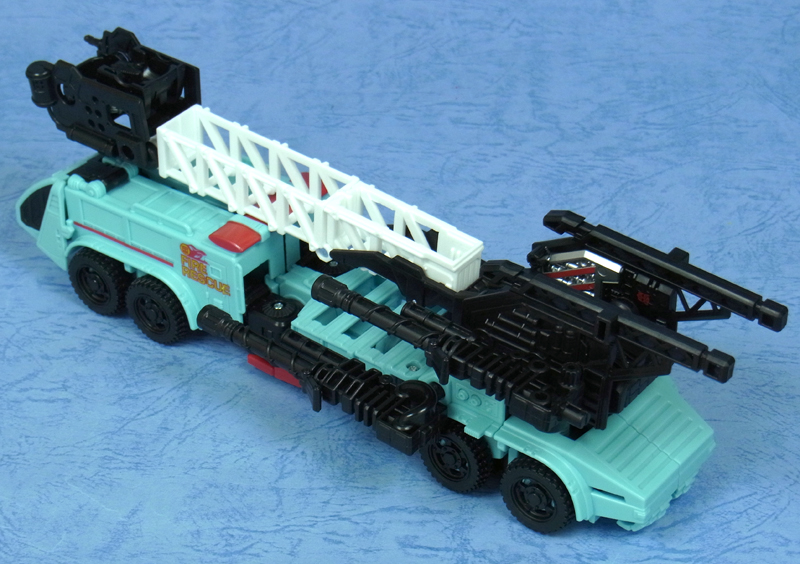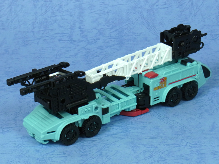 ビークルモードは8輪トレーラーベースのはしご付消防車。 カラーリングは対称的ですが、DOTMセンチネルに似た雰囲気が感じられます。 | |
