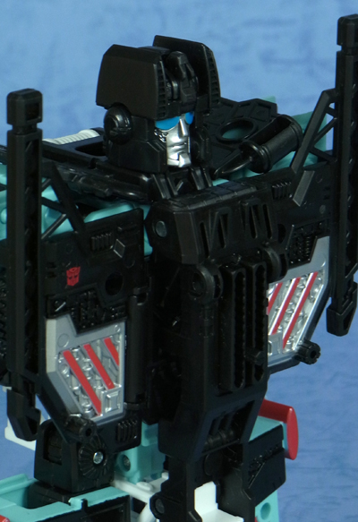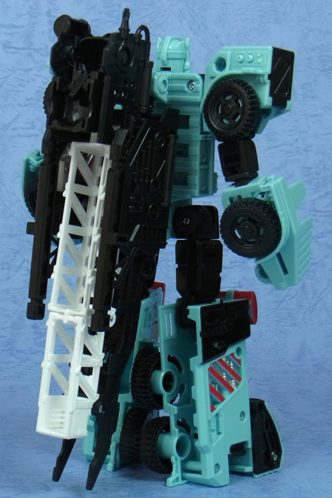 TFというより、いかにも日本のロボットヒーローらしいスタイリング。 背中のハシゴユニットが若干重いか。 |
