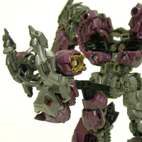 胸部は肋骨っぽいフレームや、輪郭に這うチェーンソーのようなクローラーなど禍々しいデザイン。 メックアライブで内部が動いたりしたらカッコ良かったでしょうね!! | |
