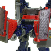 ブースターは映画公開前の現在、どのような扱いになるか不明で、動かしやすいのと個人の趣味で、斜めに傾けています。 このブースター以外は特に奇をてらったところのないオプティマスに思います。 分りにくいですが、目には薄紫色に光る集光ギミック搭載。 | |