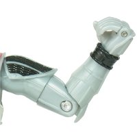 肩は軸の組み合わせで可動。 障害になるような肩アーマーのないデザインですが、可動域が特に広がっているということはありません。 肘は単軸で90度くらい曲がり、手首は回転可能です。 | |