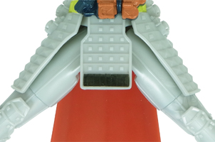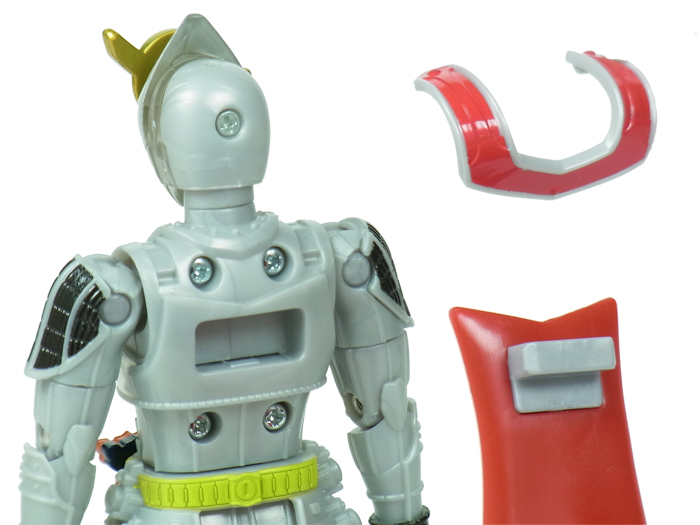 重厚な鎧を払いのけ、真の力をむき出しにしたスパルタンなフォルム! マントが細かったり、色が足りなかったりと再現性はちょっとアレですが、 その特徴が玩具として巧くアレンジされており、雰囲気はよく伝わります。 | |