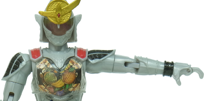 新た得た極ロックシードとカチドキロックシードにより変身する仮面ライダー鎧武 極アームズ!! 全てのアームズの力を集結し、そのウェポンを自在に使いこなす鎧武の究極形態ですが、 そのトイの出来や如何に!? |