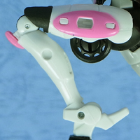 B 車体裏中央に収納されているパーツを付け根から外側に開き、反転させて腕とします。