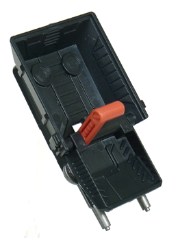 @ ルーフトップを外したところ、底面から。 リヤ部を中央から左右に分割し、爪先を立て、後方に引き伸ばして脚部を形成します。 | |