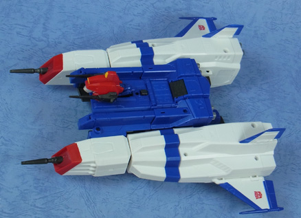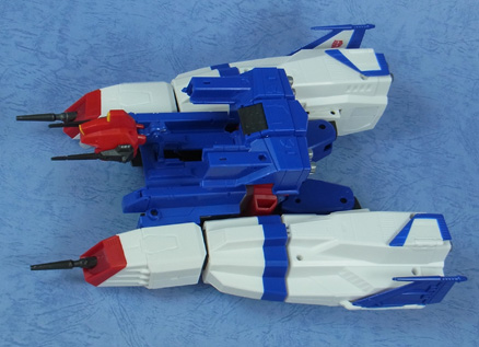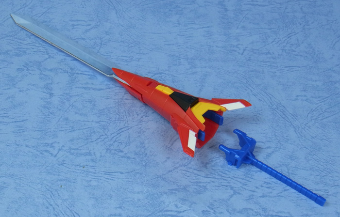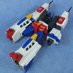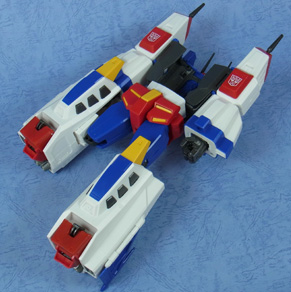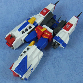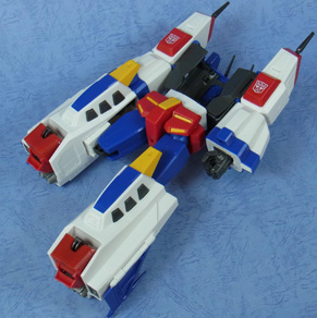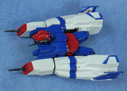 Vスターの先端にビークルモードのセイバーを据えた大型ジェットモード。 ランディングギアは、この形態でもそのまま使用することができます。 | |