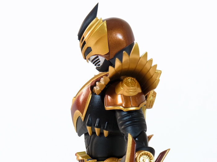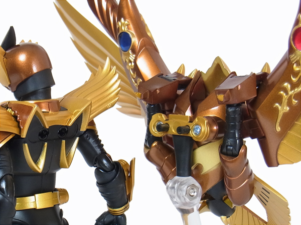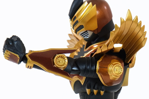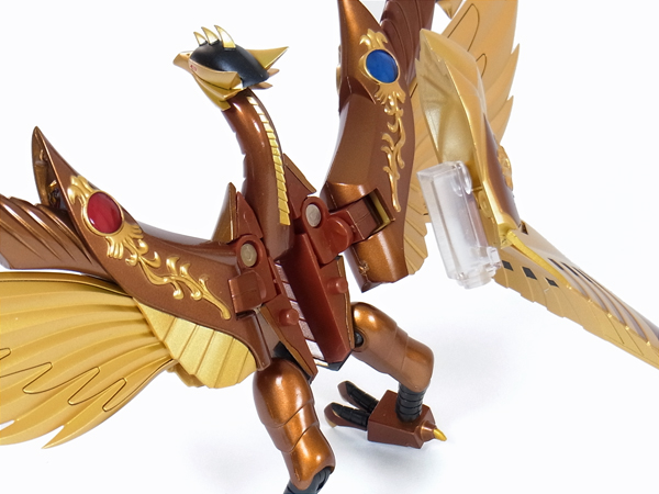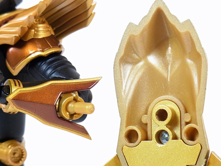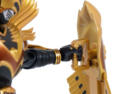 ファイナルベント・エターナルカオスの発動状態としてゴルトフェニックス と合体した姿を再現できます。 大神官イメージというか、圧倒的な迫力です。 | |