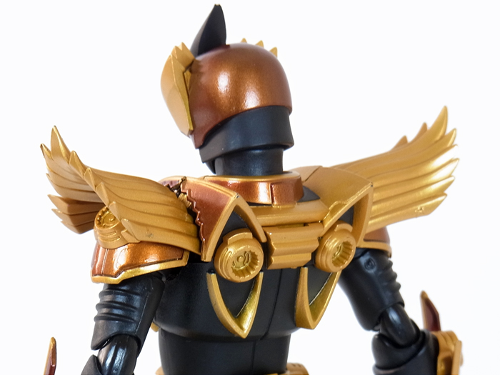 左右に大きく広がる肩アーマーは、鳳凰の羽のように 力強くかつしなやかな仕上がりです。 | |