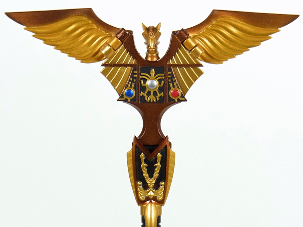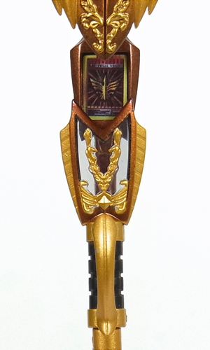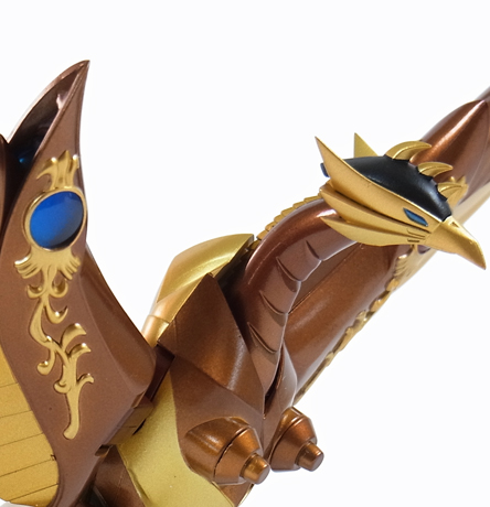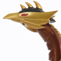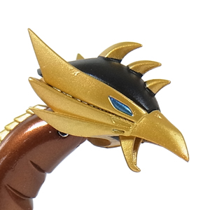不死鳥型のミラーモンスター。 翼の先がゴルトセイバー、背中から尾にかけてのパーツ を取り外すとゴルトシールドになります。 | |