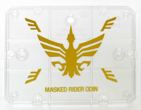 オーディンのデッキを模した台座が付属します。 絵柄は金メッキ調ですが、スッキリシンプルな仕上がり。 | |
