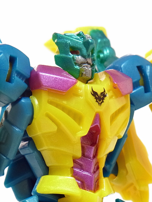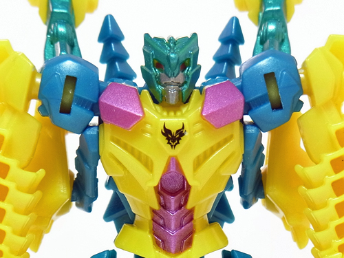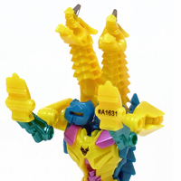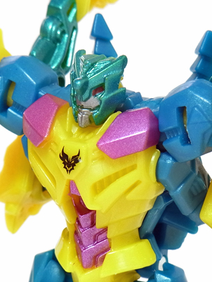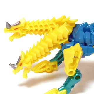 両腕に竜の首を配した獰猛な姿、と言いたいところですが・・・ 造形の調子やポップな配色から、どことなくゆるキャラに通じる 愛嬌のあるスタイリングに見えてしまいます。 | |