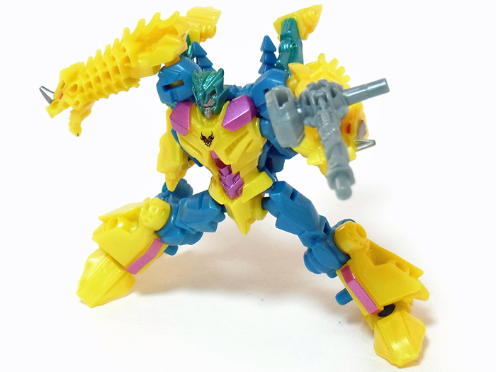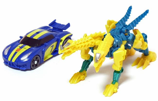4つ足のたたずまい、先割れ尻尾からカラーリングに至るまで、 シナ―ツインの形質をしっかり受け継いだビーストモード。 | |
