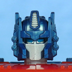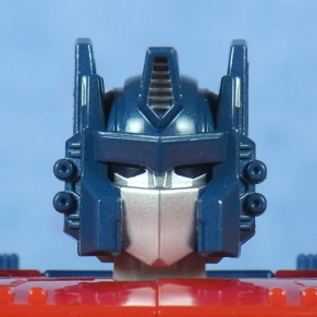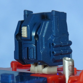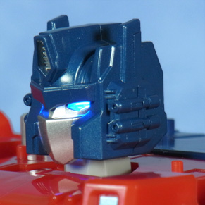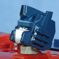 左がLG、中央が交換パーツ(点灯)、右が交換パーツ(消沈)。 ヘッドマスター構造のため寄り目っぽくなっていた表情が改善され、位置も上に修正されたことからアニメ顔に近付いた印象です。 | |
