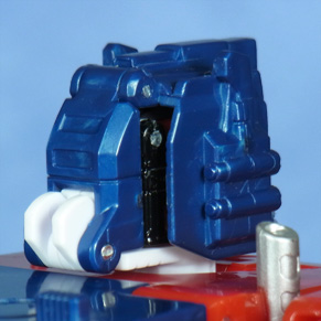 キャブのパネルを開き、マトリクス的に内側に固定します。 白いパーツの前から2列目のスリットに、脚が変形した黒いパーツを上から差し込みます。 | |