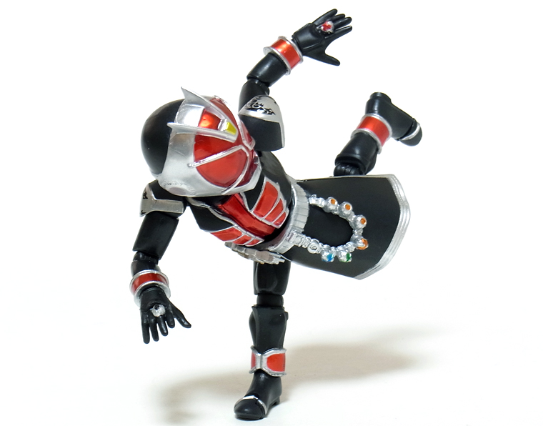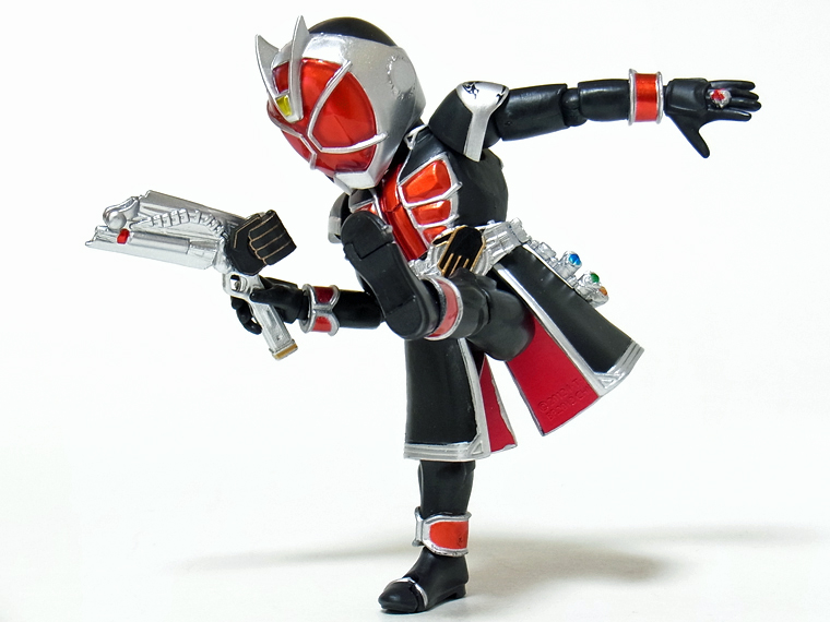 【コメント】 チンチクリンな見てくれとは裏腹に、たいへんよく動くフィギュアです! 造形、塗装とも非常に優秀でフィギュアーツなどの小型アクションフィギュアに迫る勢い。 それだけにあと一歩、肩の造形による隙間や、オプションパーツの少なさが惜しい。 まあ、プライズだからこれで良しとするべきなのかもしれませんが、このようなデフォルメアイテムは 計り知れない起爆力があり、本家アイテムを食ってしまうようなポテンシャルを感じました。 例えば、フィギュアーツのようにアクション用のローブが1つでも用意されれば、ポージングの楽しみも 一気に弾けたのではないかと思われます。 以上、プライズだけに留めておくのはもったいない、R/D 仮面ライダーウィザード フレイムスタイルのレビュー、終了! |
