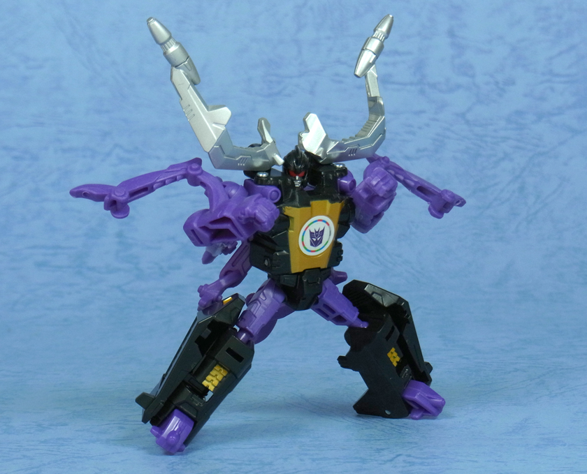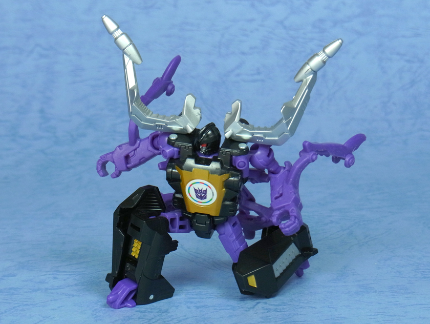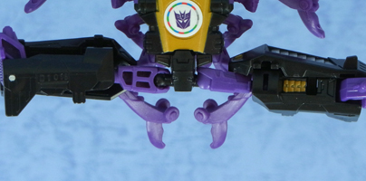 インセクトモードから腕と脚を調整し、ブレークダウンのヤッパを用いて接続しています。 取説等に記載はありません。 | |