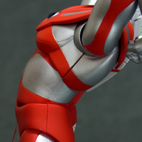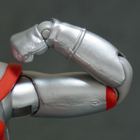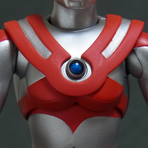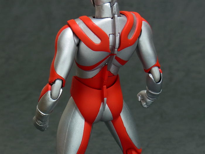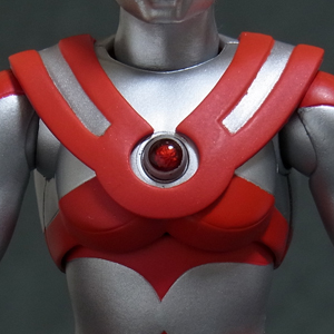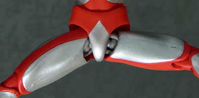 プロテクターを被せたウルトラアクト独特の構造ですが、分割線や赤と銀の境界も適切に 処理されており大きな破綻は無いと思います。 下チチが丸過ぎて・・・何というか、吉田沙保里でも中に入ってたらこんな感じになるか。 | ||