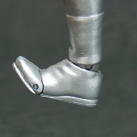 足首は球体関節で、爪先に上下軸もあり。 足自体の接地面が小さいので、直立安定性は今一つですが、可動域も保持力も接地性も申し分ありません。 | |