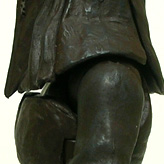 股関節は硬めで、左右開脚が約60度。 腿付け根には回転軸があり、下方向にわずかに伸ばすことができます。 膝は二重関節で約150度ほど曲がります。 |
