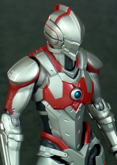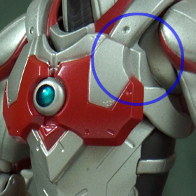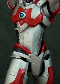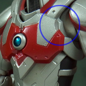 スミ入れはほとんど施されていませんが、それでも充分シャープでカッチリした仕上がり。 カラータイマーや眼の部分などにクリアパーツは使われていません。 | ||