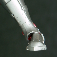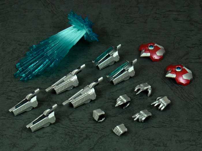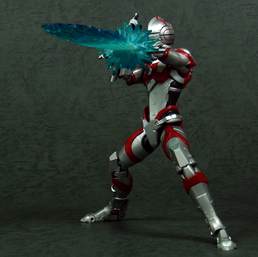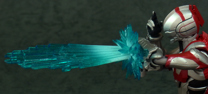 必殺光線のエフェクトももちろん付属。 組み方は同じですが、左の腕から肘にかけて水平に光線が出ます。 | ||
