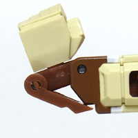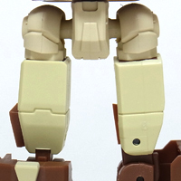 肘は単軸で90度以上曲がります。 上腕中ほどに回転軸あり。 手首は変形ギミックを利用して角度を付けることができます。 腰は軸回転が可能です。 | |