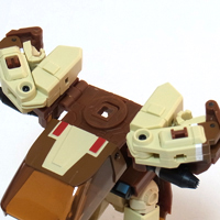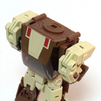 マスター戦士、クローム登場!! ヘッドマスターズは、この小さなマスター戦士が頭部に、ビークルや モンスターが身体(トランステクター)に変形して合体します。 | |