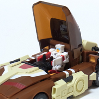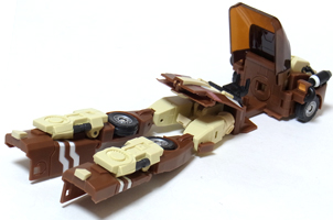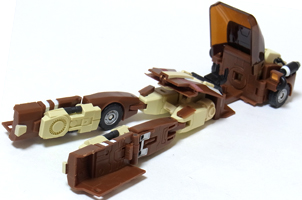 @ クロームレーザーを取り外した状態から。(一応、装着したままでも変形可能です) キャビンを開けて、クロームを出します。 | |