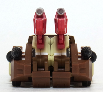 ビークルモードは未来的なフォルムを持つパワーカー。 牛丼を引き立てる紅生姜のような、アースカラー×レッドの配色がシブいぜ! | |